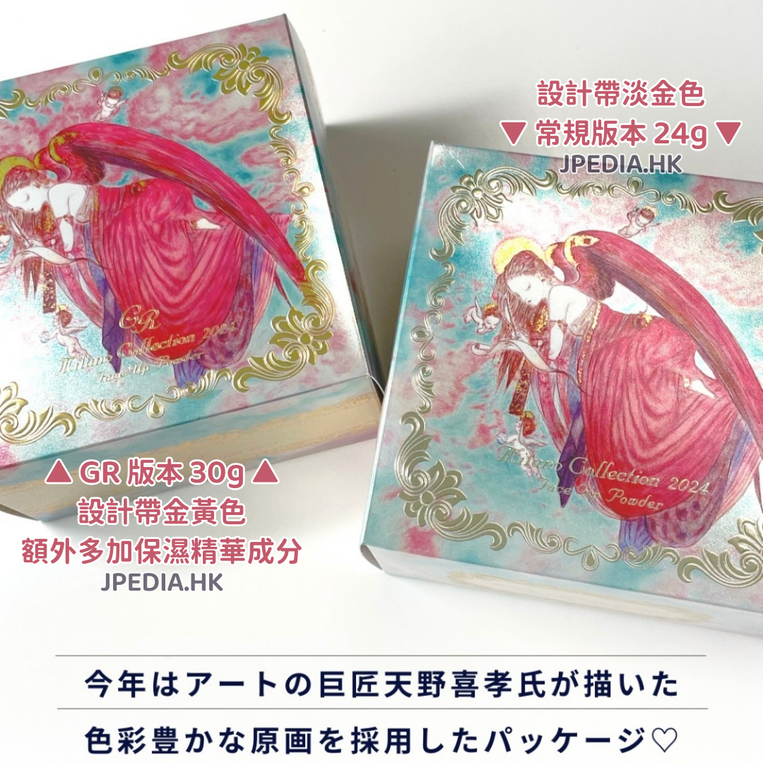 粉末質地細膩,猶如精緻的薄紗,具有細膩光澤的粉末增強粉底的透明度和亮度,透亮感UP⇡⇡同時絲絨般的柔滑質感,是一款能讓您皮膚保持清爽的蜜粉餅。到了雙數年份 (2024),再次換成厚身盒設計,用完之後如果不打算再配補充裝,稍微清潔一下就變成首飾盒,作為裝飾品也很精美。