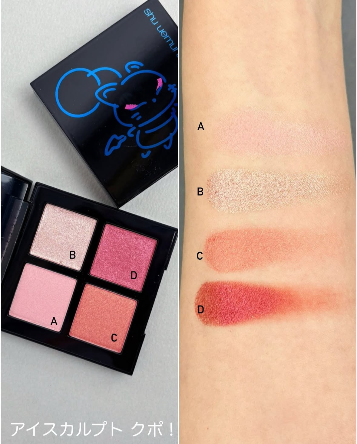以莫古力的可愛造型為靈感的眼影盤。以杏色和粉紅色為基調的四種暖色調,為你的雙眸增添溫暖與健康的光澤。